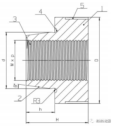 拉杆螺母与注塑机上的拉杆配合使用,由于圆 锥状体 2 内表面向螺母本体 1 的外表面倾斜且结合部位采用连续刚度设计(内凹圆角 R3), 避免了螺母结构的刚 度突变和对传递到拉杆螺纹上的载荷进行了分散的结构设计,使得 拉杆螺母贴合面的载荷传递到圆锥状体 2 中心螺孔 3 上时,通过结合处的分散应力槽将应 力向远离贴合面的后部分散,在远离贴合面的前几个牙受力减小,牙根应力大大降低,内螺 纹的受力趋向均匀,从而使得拉杆螺纹上受到的应力分布更加均布,应力集中大大降低,疲 劳裂纹产生问题得到缓解,拉杆的使用寿命大大提高。