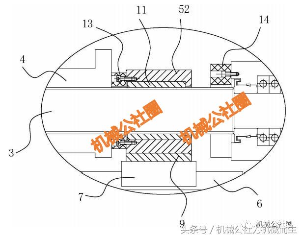 通过设置第一滑套 10 和第二滑套 11,使第一托架 51 和第二托架 52 可在 龙门丝杆 3 上滑动,以避免与丝杆螺母 4 干涉。当第一托架 51 和第二托架 52 受到丝杆螺 母 4 的挤压力时,跟随丝杆螺母 4 移动,在整个移动过程中,第一托架 51 和第二托架 52 一 直保持对龙门丝杆 3 的支撑。第一托架 51 与第二托架 52 的距离等于两个丝杆支座 1 之间距离的一半。当第一 托架 51 移动至靠近丝杆支座 1 一侧时,第二托架 52 移动至龙门丝杆 3 的中部,对龙门丝杆 3 进行有效支撑 ;当第二托架 52 移动至靠近丝杆支座 1 一侧时,第一托架 51 移动至龙门丝 杆 3 的中部,对龙门丝杆 3 进行有效支撑。文章源自solidworks教程网-http://gocae.com/3707.html
