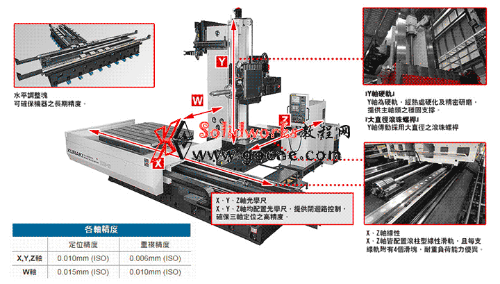 由于机床上的主轴箱、滑枕、滑座是沿着立柱、主轴箱体、床身等大件上的导轨作运动,通常在加工之前要将设置好尺寸位置的主轴箱、滑枕、滑座固定夹紧,现技术的夹紧方法是:在主轴箱、滑枕、滑座的上方设置杠杆,杠杆由控制镗铣床动作的液压系统控制动作用来压紧主轴箱、滑枕、滑座进行定位,采用的是单向卡紧。这种方法容易产生滑移,影响主轴箱、滑枕、滑座的定位精度,导致机床加工精度及产品质量的降低。文章源自solidworks教程网-http://gocae.com/3749.html